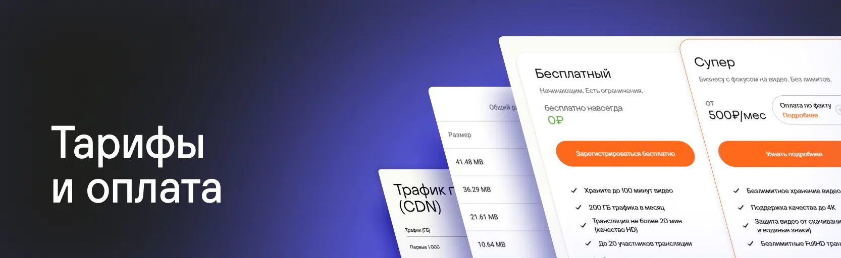- Супер — для бизнеса с фокусом на видео (оплата по факту использования)